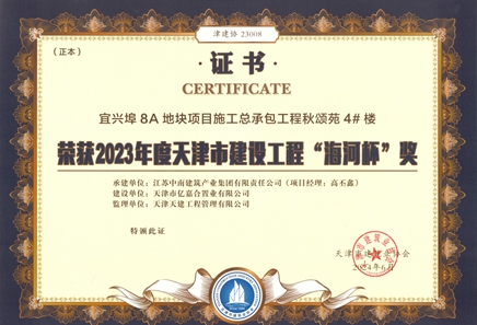 2023年度天津市建設(shè)工程金獎(jiǎng)海河杯(宜興埠8A地塊項(xiàng)目4-5#、8-10#)